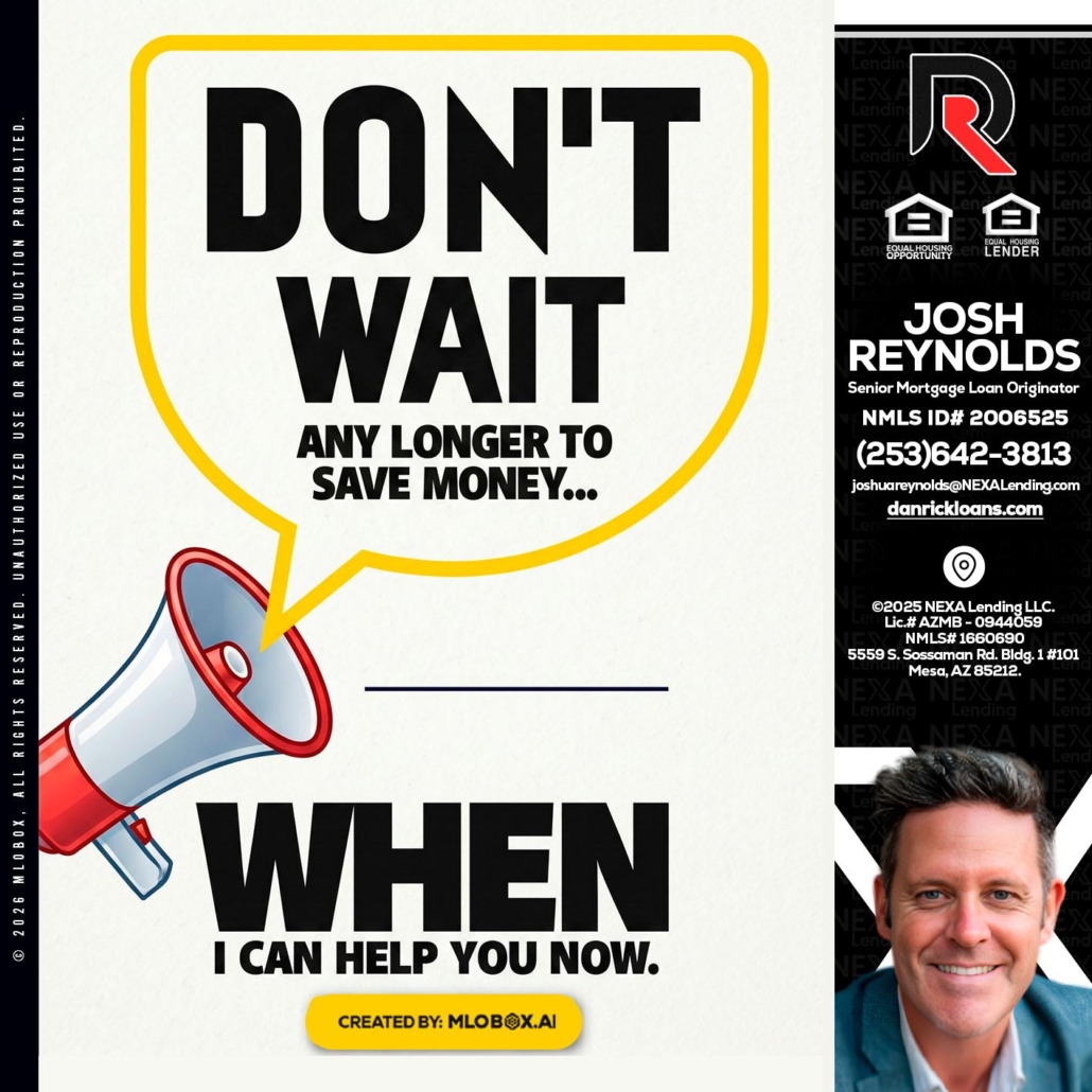 Hi, my name is Josh Reynolds. I’m a Loan Officer with NEXA Lending LLC., offering personalized mortgage solutions, fast customized quotes, great rates and service with integrity.